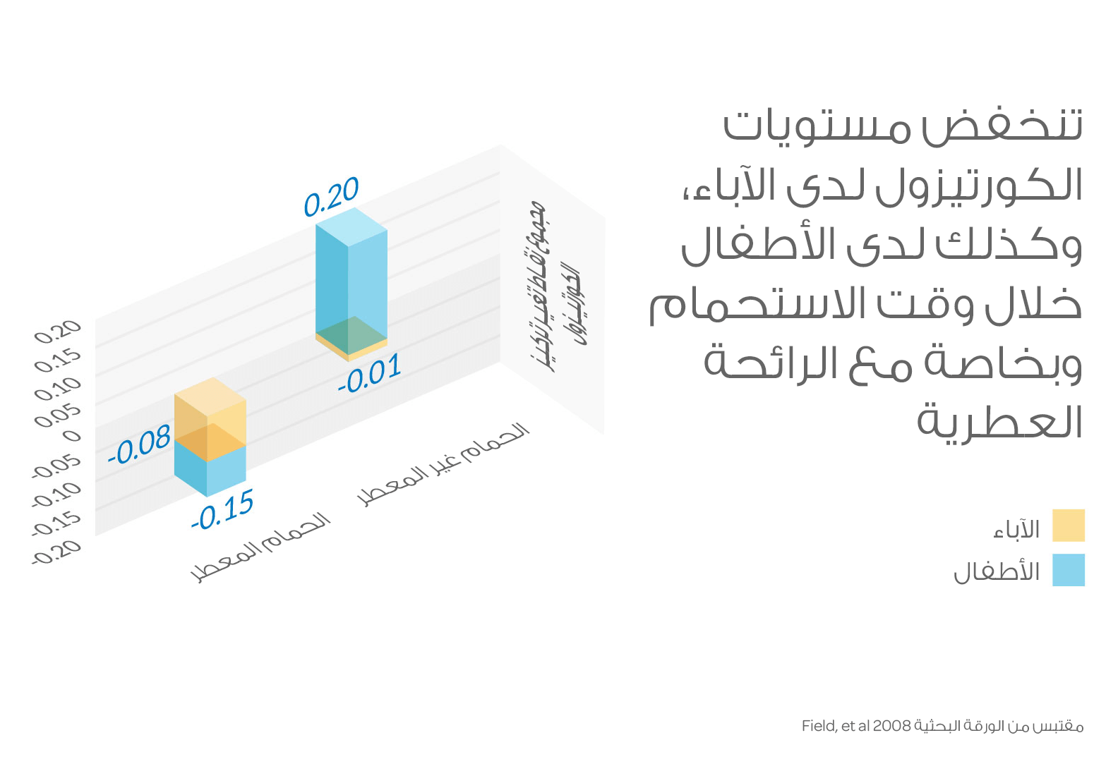 إن وقت استحمام الطفل له تأثير مُهدّئ على الطفل ووالديه على حدٍ سواء، وبصفة خاصة عند تحميم الطفل بمنتجات الأطفال المعطرة. فقد أثبتت الدراسة أن الأطفال (عددهم=30) الذين تم تحميمهم بمنتج معطر (مقارنةً بآخرين لم يتحمموا بمنتجات معطرة) بكوا لفترات أقل وقضوا فترة نوم عميق أطول بعد الاستحمام. وفي الوقت نفسه، فإن الآباء الذين حمموا الطفل بمنتج معطر تبيّن أنهم أكثر استرخاءً وتواصلوا مع أطفالهم بالتلامس الجسدي لمدة أطول. كما انخفضت مستويات الكورتيزول لدى كل من الطفل والأم بعد الاستحمام بمنتج معطر، مما يدل على انخفاض في مستويات التوتر بصفةٍ عامة.10