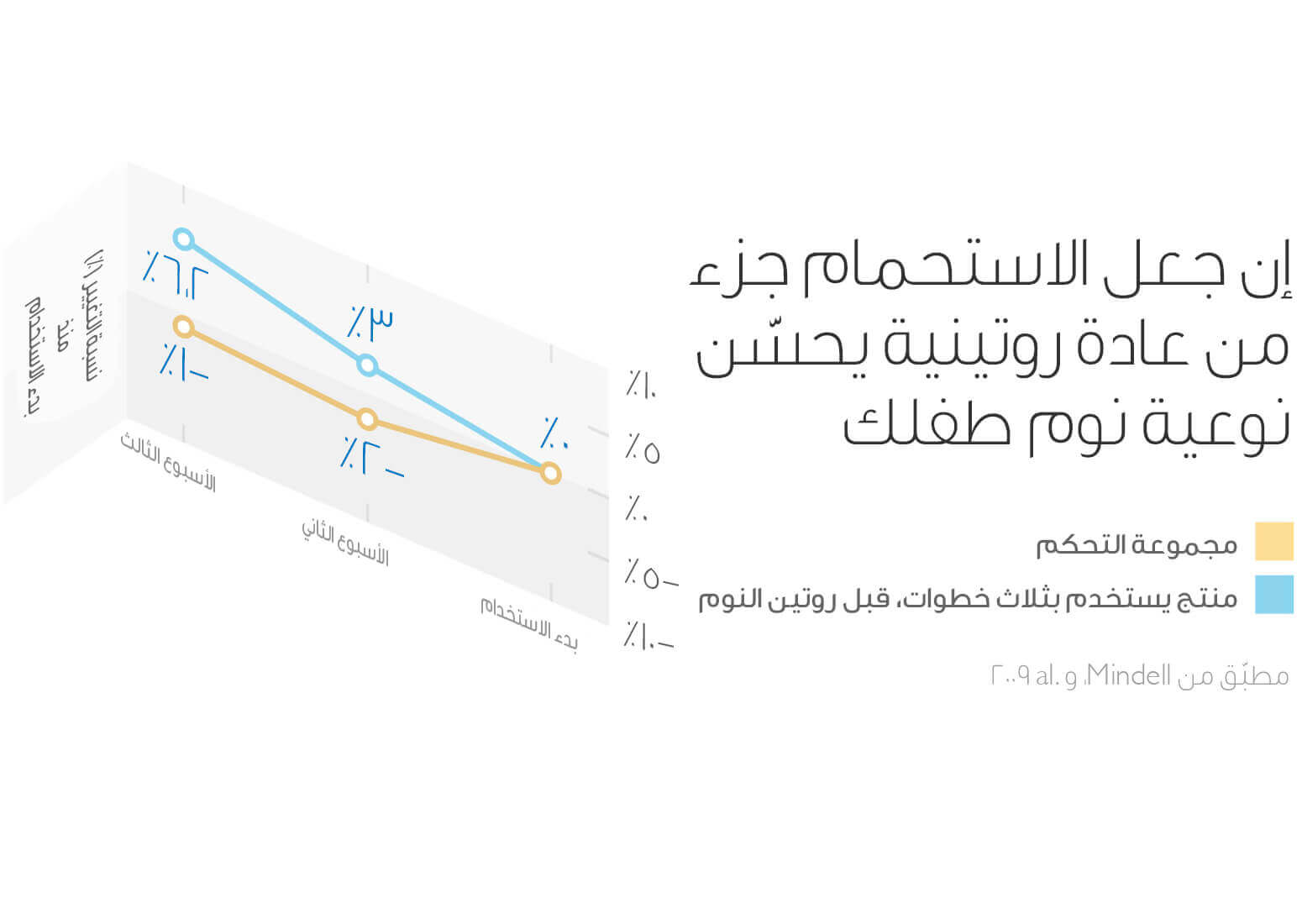 عندما يصبح روتين وقت الاستحمام ممارسةً تقومين بها يومياً، يقل التوتر لديك ويحظى طفلك بكمية ونوعية أفضل من النوم.22 وفي الواقع تدعم الأبحاث العلمية هذا الروتين بل ويعتبر من السلوكيات البسيطة التي تساعد على تحسين كمية ونوعية النوم لدى الأطفال وخاصةً إذا تضمن حماماً دافئاً ثم تدليك لجسم الطفل بمرطّب لطيف للأطفال مع بعض الأنشطة الهادئة. وقد ارتبطت المواظبة على هذا الروتين بتقليل معدلات التوتر لدى الآباء.22 وفي دراسةٍ لمدة 3 أسابيع شاركت فيها أمهات وأطفالهن (عددهم=206) بعمر سبعة أشهر إلى 18 شهراً، تم توجيه الأمهات لتنفيذ روتين معين أثناء تحميم الطفل مع التدليك وبعض الأنشطة الهادئة في حين قامت مجموعة المراقبة بمتابعة الروتين المعتاد مع أطفالهن. وقد لوحظ أن الحالة المزاجية للأمهات في المجموعة التي نفذّت الروتين تحسنت بشكلٍ ملحوظ وتحسنت كذلك كمية ونوعية النوم لدى أطفالهن.22 ومثل هذا الروتين يمكن أن يُطلق عليه روتين متعدد الحواس لأنه تضمن تحفيز حواس اللمس والبصر والسمع والشم لدى الطفل.